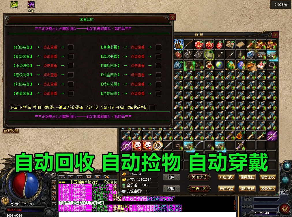- 【机器猫佣兵】 全服所有装备回收比例提高两倍,元宝,装备爆率捡的手发软!如遇被劫持请加3群下载